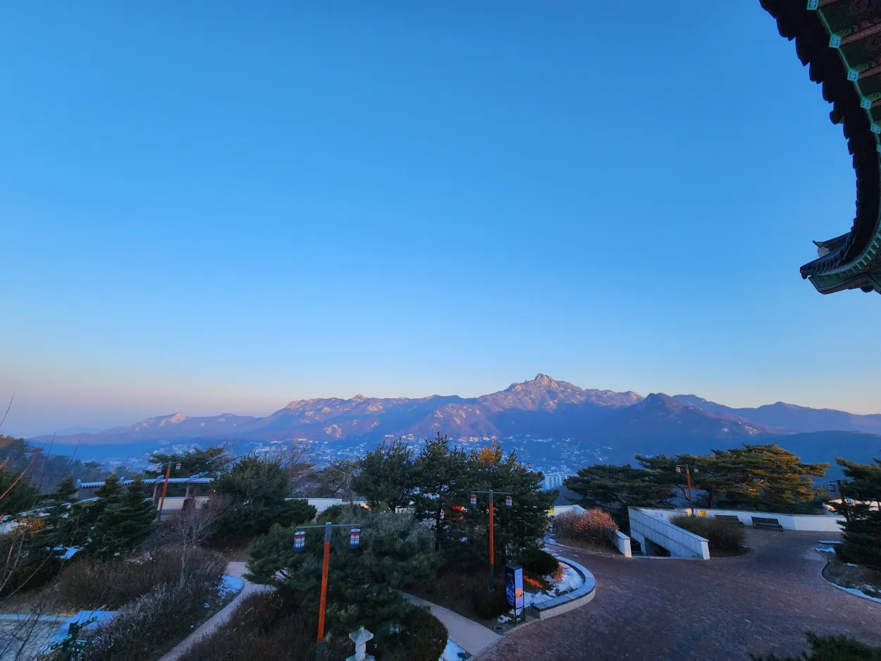 올해 초 일출을 보러가지 못해서 이번에 우리우리 설날에 경복궁 여행, 청와대 관람, 대학로 연극 보기 여행 코스를 만들었는데요. 여행 코스에서 뭔가 의미 있게 아이들과 해볼수 있는것으로 북악산 팔각정 해독이를 보는 일출 보기를 여행 코스에 넣었습니다. 이유는 아이들을 데리고 등산을 하지 않고 차로 북악산 해돋이 보러 올라갈수 있고 사람도 별로 없고 멋진 북악산 스카이웨이 드라이브도 하면서 아침의 깨끗한 공기와 기운을 받을수 있을꺼 같아서요. 다행히 구정 새해 아침에는 해돋이 보러 오는 사람들이 많지 않네요.