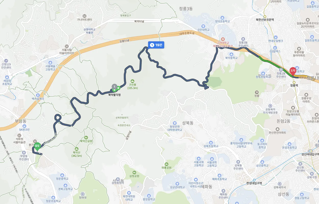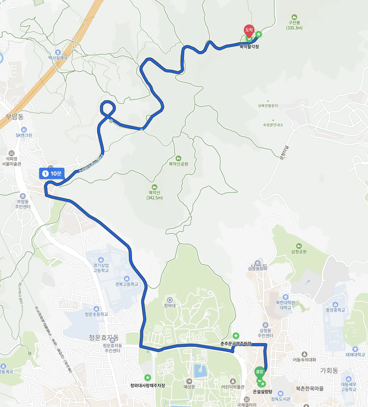 네이버 지도 북악스카이웨이 | 북악산 팔각정 해돋이 경로
