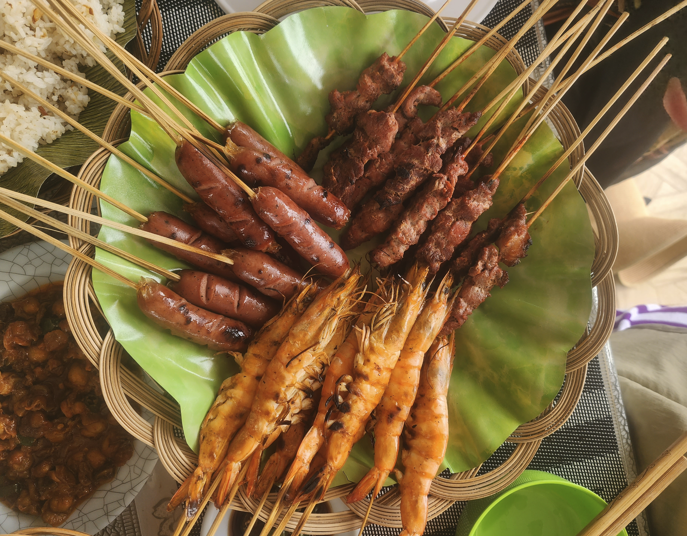 - 새우랑 쏘세지랑 고기랑 꼬치로 바베큐로 주셨어요. 맛있게 먹었습니다.