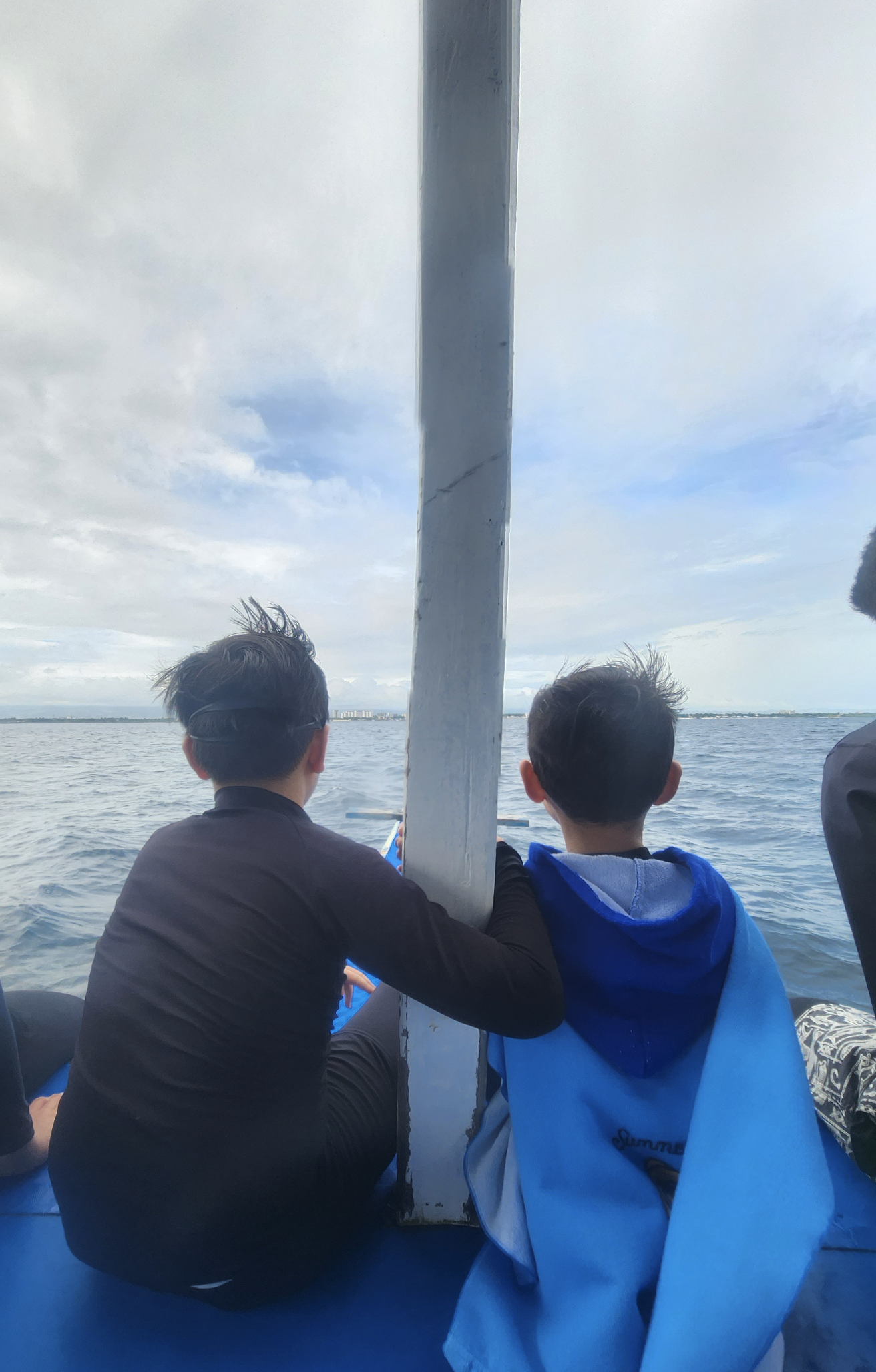 - 선착장에 도착해서 다른 그룹과 함께 조를 짜고 함께 방카 보트를 타러 갈려고 했는데 해수면이 너무 낮아지고 파도가 좀 있어 선착장에 댈수가 없어서 작은 목선을 타고 방카 보트로 옮겨 가야 했습니다.
