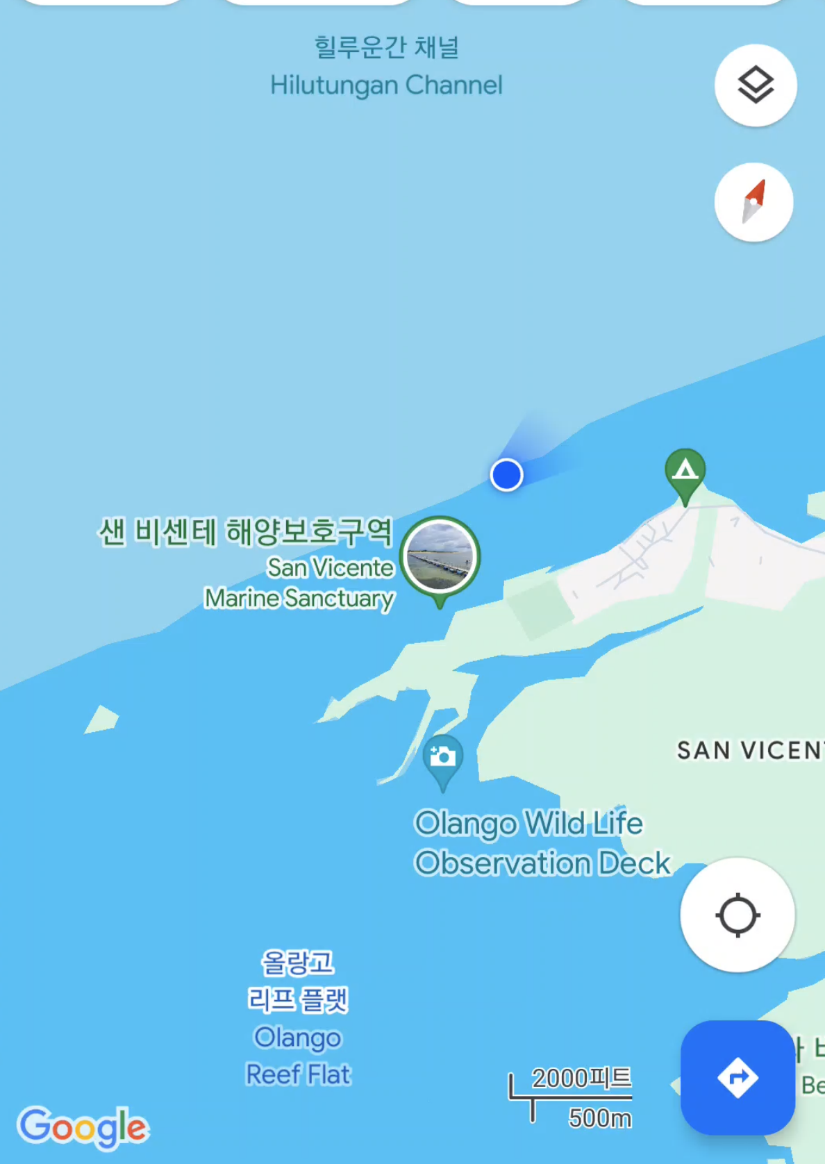 - GPS를 켜서 구글맵에서 확인을 해보았습니다. 우리가 있었던곳 샌 비센테 해양 보호구역이고 스노쿨링을 한 지점은 깊은 바다 계곡과 얖아지는 해변쪽 지점 경계선쪽에서 스노쿨링을 했었네요. 가이드분들이 배 반대편이 깊은 곳이라고 했는데 거긴 어땠을지 궁금하네요. 스쿠버를 하면 들어갈수 있겠죠? 구글맵을 켜서 위치를 확인 해보았습니다.