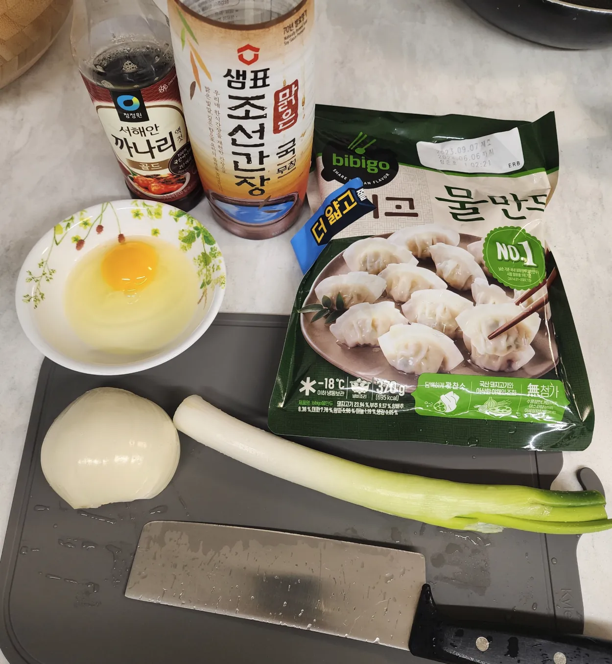 오늘은 계란만두국입니다. 두부 황태 콩나물국을 너무 많이 먹은거 같아서 아침 일찍 계란 만두국을 끌여 보기로 했습니다. 육수를 만들거나 좀더 맛있게 만드는 방법을 고려하지 않고 이번에는 빠르게 15분내에 끝내는 반법으로 계란만두국을 만들어 보았습니다.