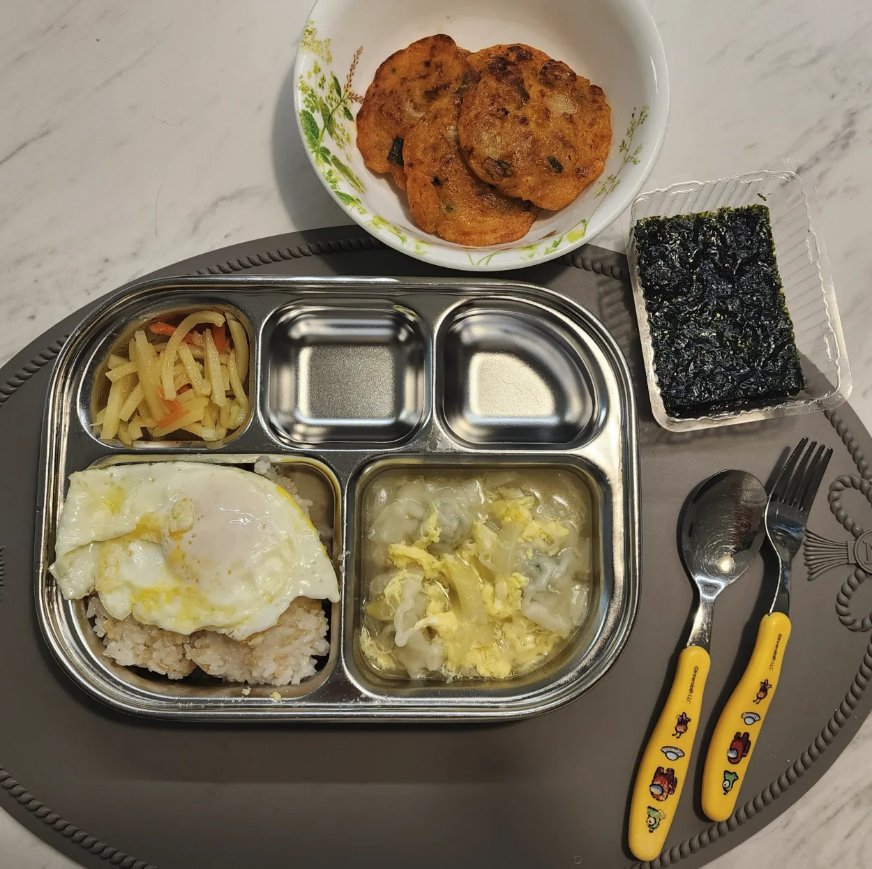 계란 만두국 아침 아이들 식단으로 급하게 끓여서 내어 보았습니다. 오래간만에 먹으니 맛있네요.
