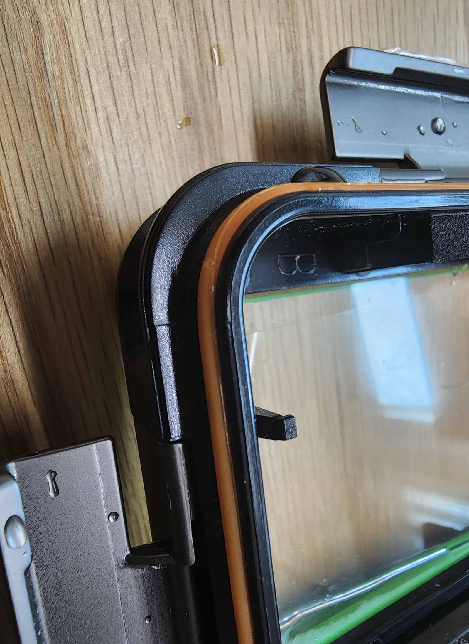 - 고무패킹 바깥쪽 부분으로만 물이 있고 패킹 안쪽으로는 물이 없습니다. 완벽하게 이상없이 방수가 잘 되었습니다.