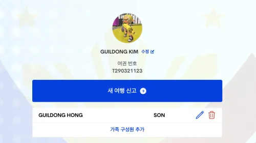 아래와 같이 가족 정보와 가족의 사진을 등록 합니다. 아래 필리핀 etravel 화면 참조
