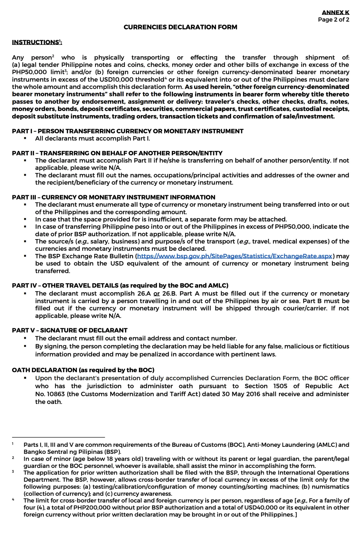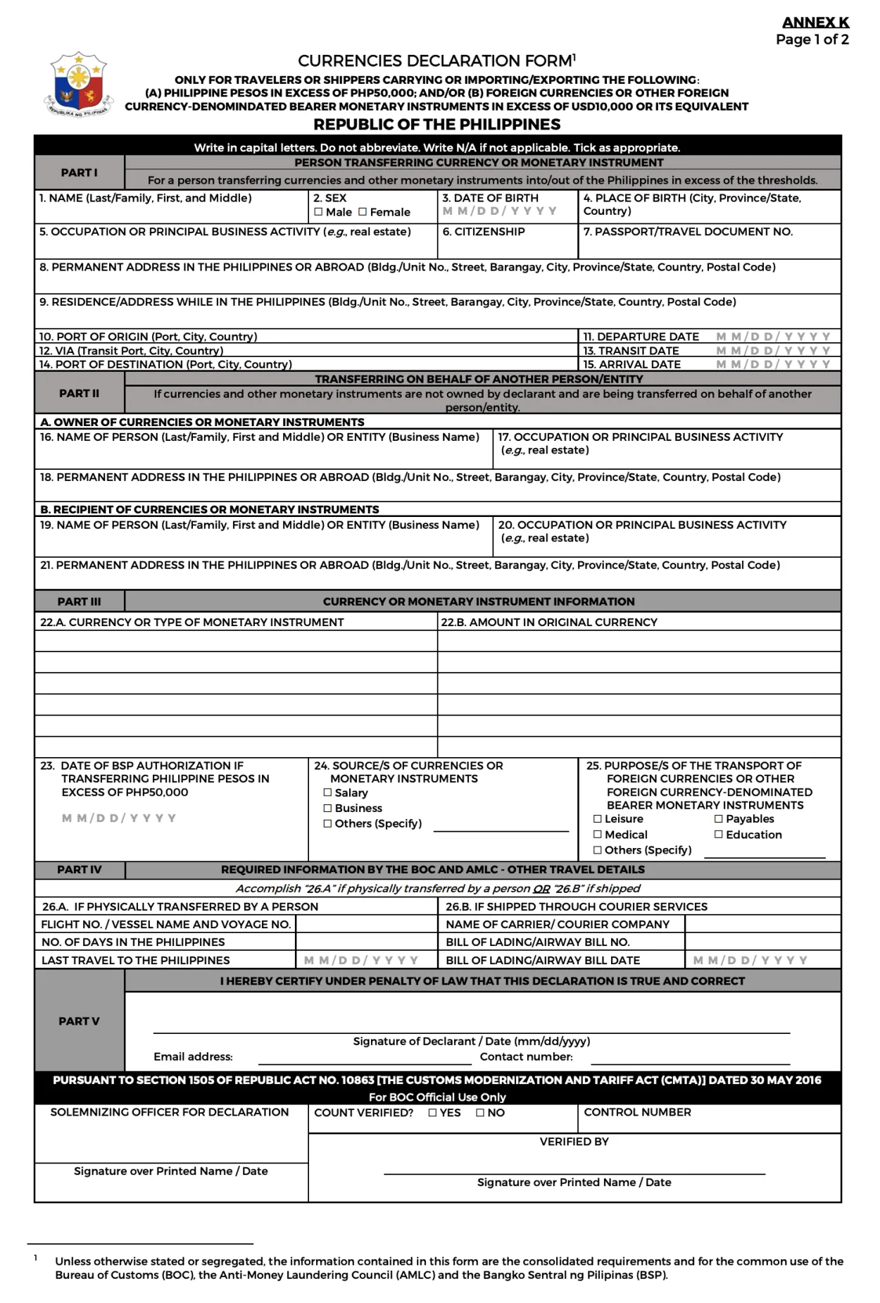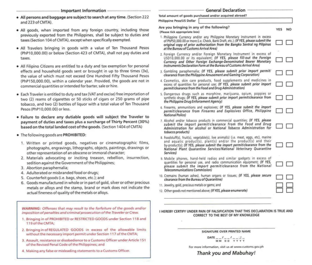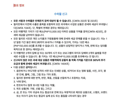 과거 종이 필리핀 입국 신고시 페이저 양식