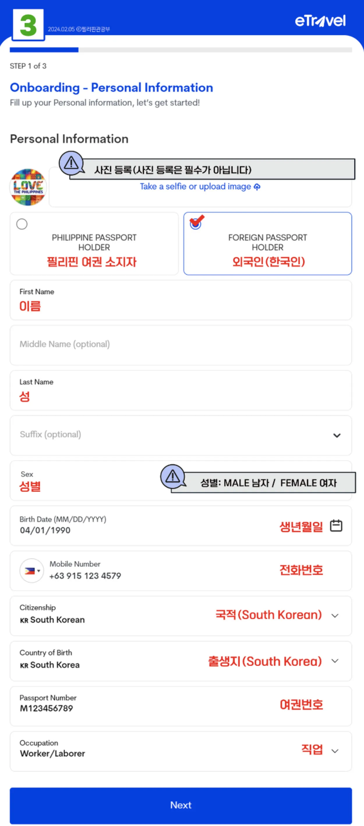 필린핀 이트래블 작성방법에서 가장 중요한 부분이기도 합니다.