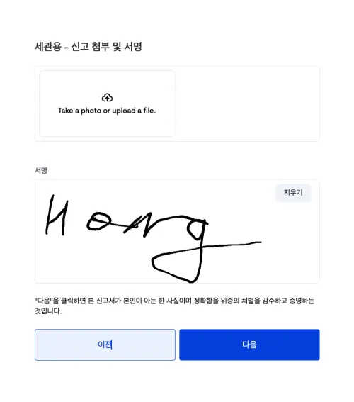 - 정확한 정보를 입력하지 않으면 입국이 거부될 수 있습니다.