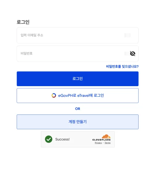 필리핀 이트래블 작성방법에서 제일 중요한 계정만들기 입니다.