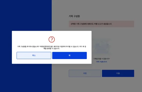 그리고 가족 구성원 등록 "예" 버튼을 클릭합니다.
