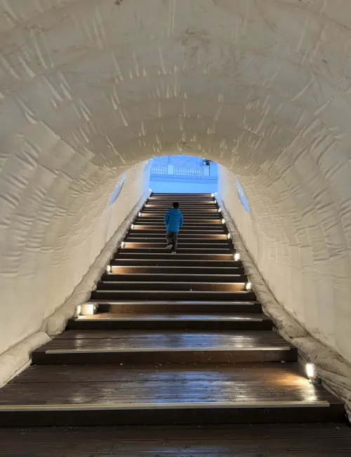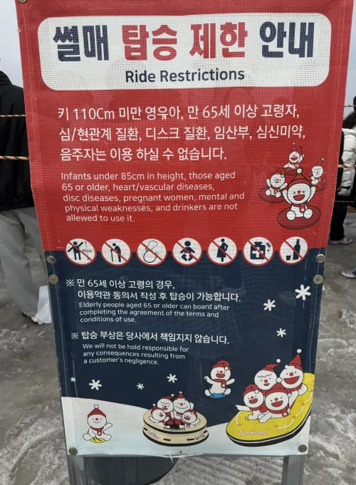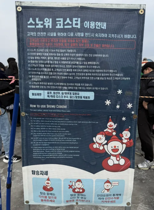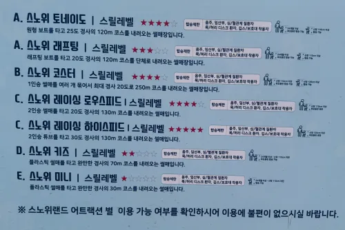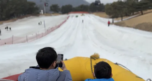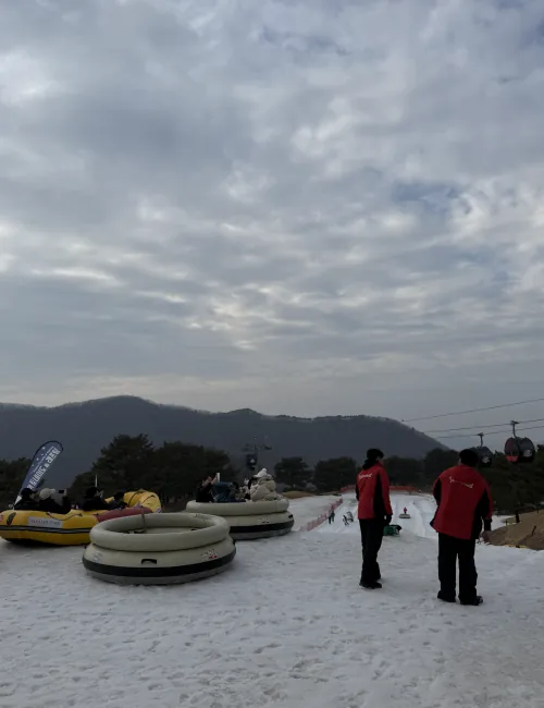 - 원형 보트를 타고 25도 경사의 120m 코스를 내려오는 썰매장