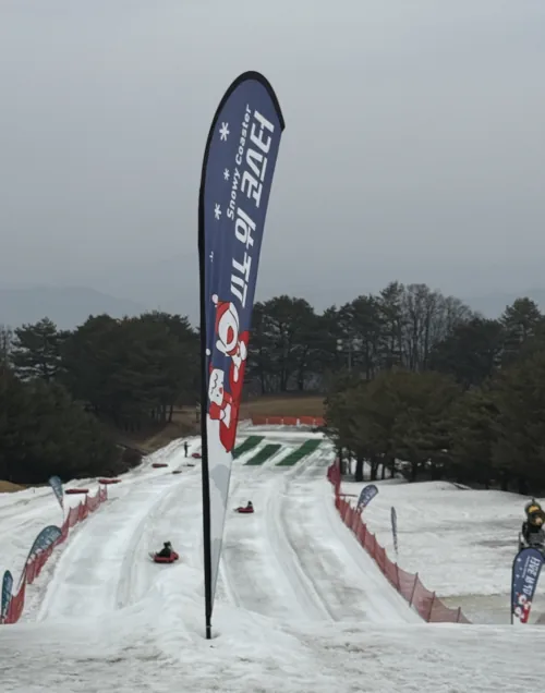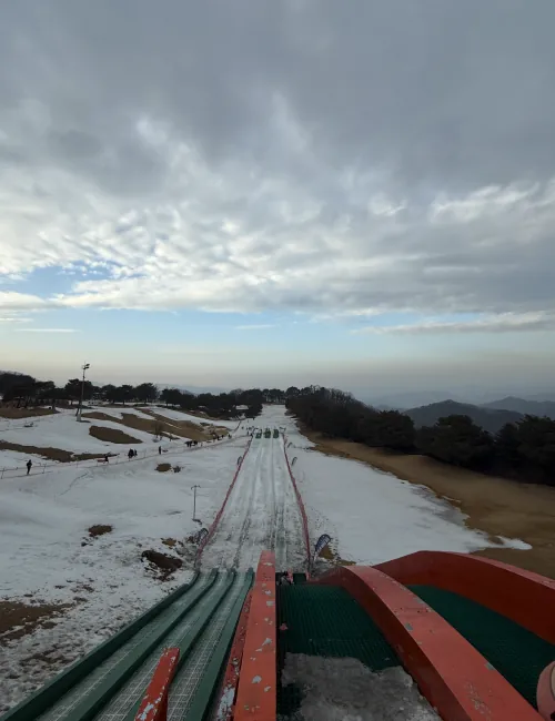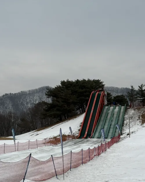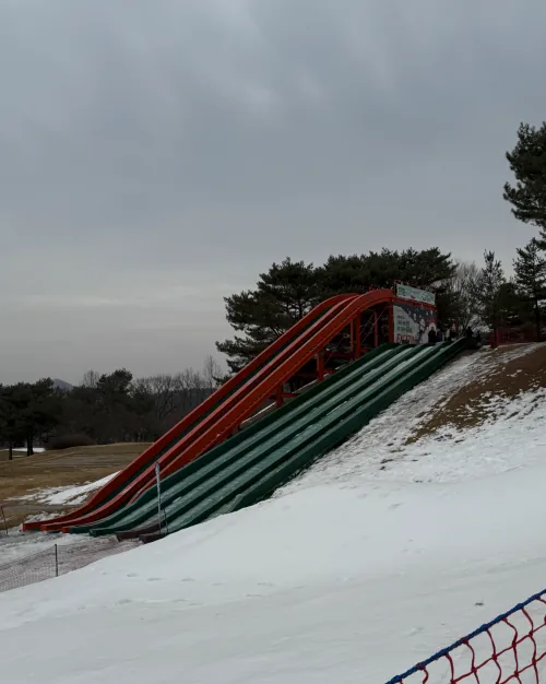 - 1인승 썰매를 여러개 묶어서 최대 경사 20도로 250m 코스를 내려오는 썰매장