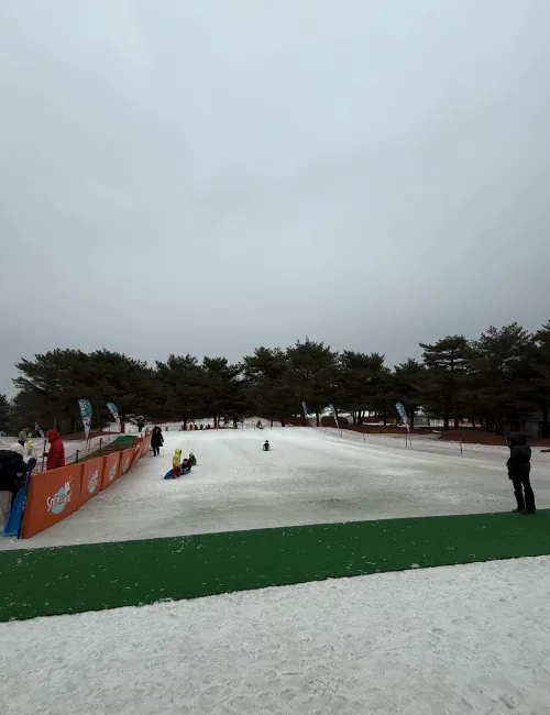 - 플라스틱 썰매를 타고 완만한 경사의 30m 코스를 내려오는 썰매
