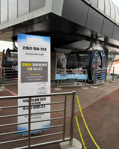 비발디파크 스노위랜드로 올라갈려면 곤도라를 타고 올라가야 합니다. 탑승정원은 8명이라고 합니다.