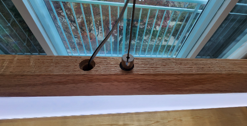 조명 상단의 와이어 연결부
