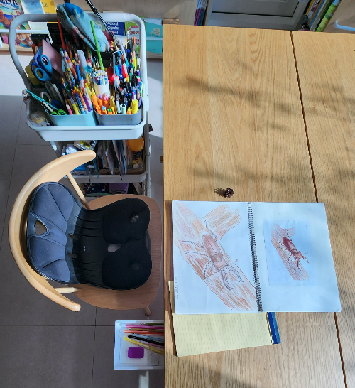 그림을 그리거나 할때는 아래와 같이 크레용 색연필 등 도구 트레이를 옆에 두고 작업을 하면 편하게 일할수 있는 환경을 갖출수 있습니다.