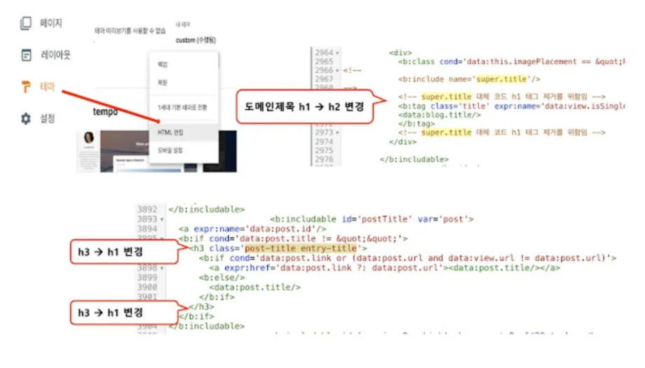 2. 구글 블로그스팟 테마 h1 태그 변경하기