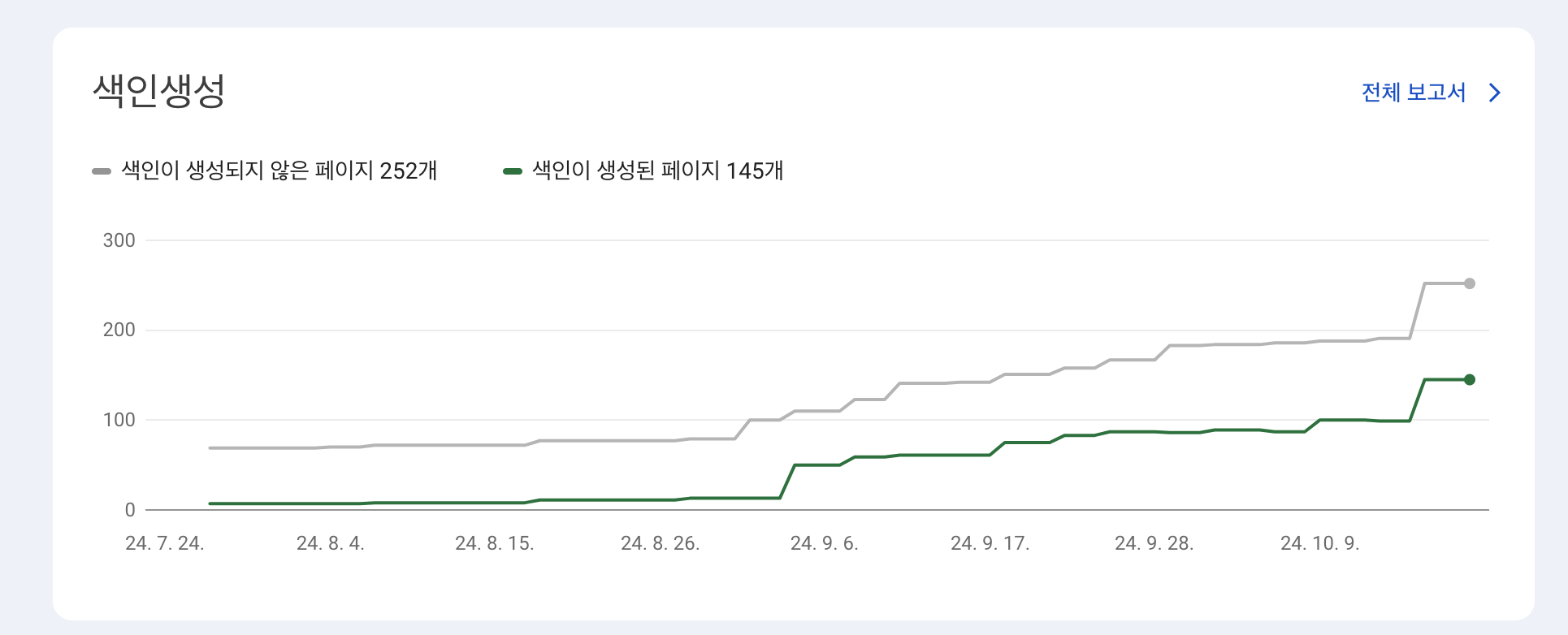 2. 원인 파악 결과 등록한 글은 30개가 넘어 가는데 구글서치 콘솔에 색인 안되는 현상 발견