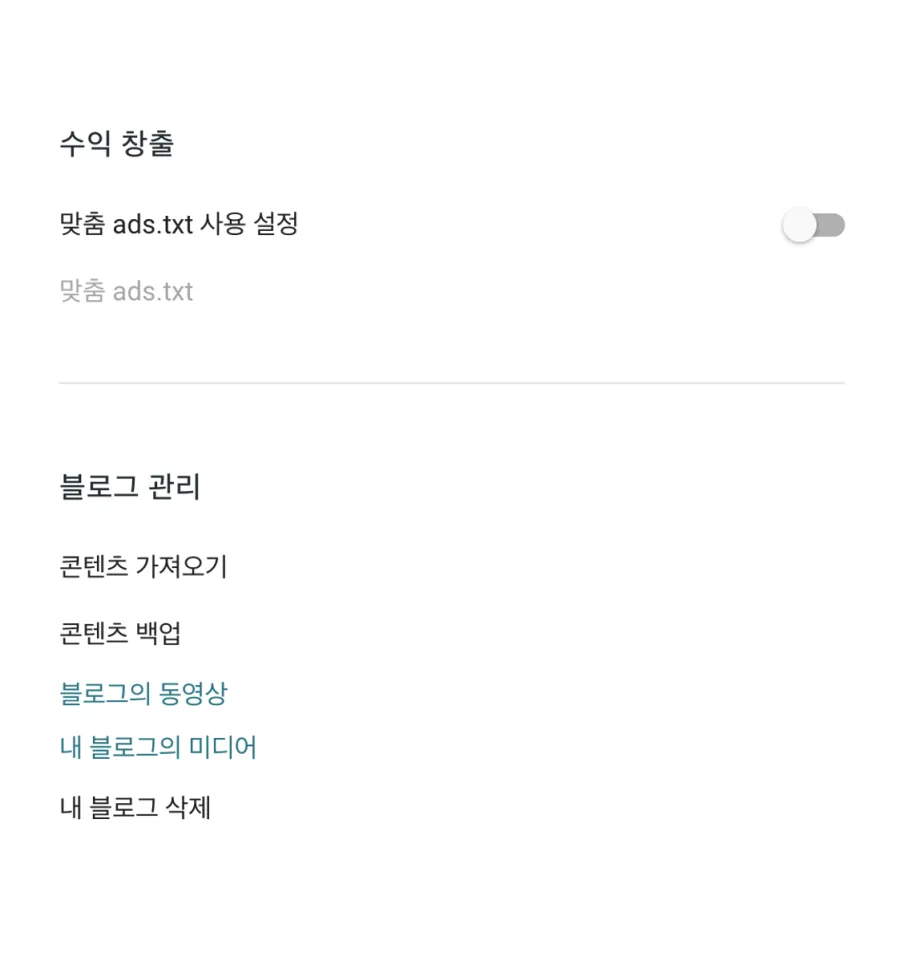 11. 설정의 수익 클릭 해서 애드센스 연결은 함. 광고 연결하지 않음.