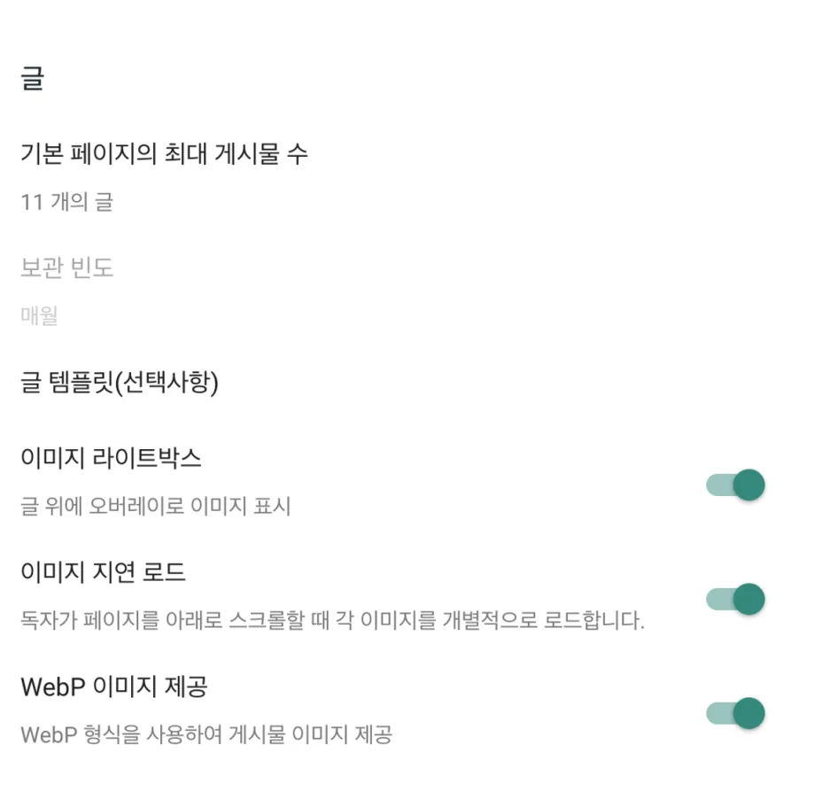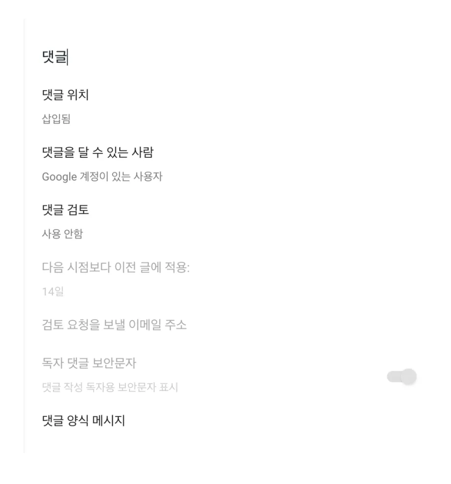 9. 구글 Blogger ( 블로그 스팟 ) 설정 저의 셋팅 내용