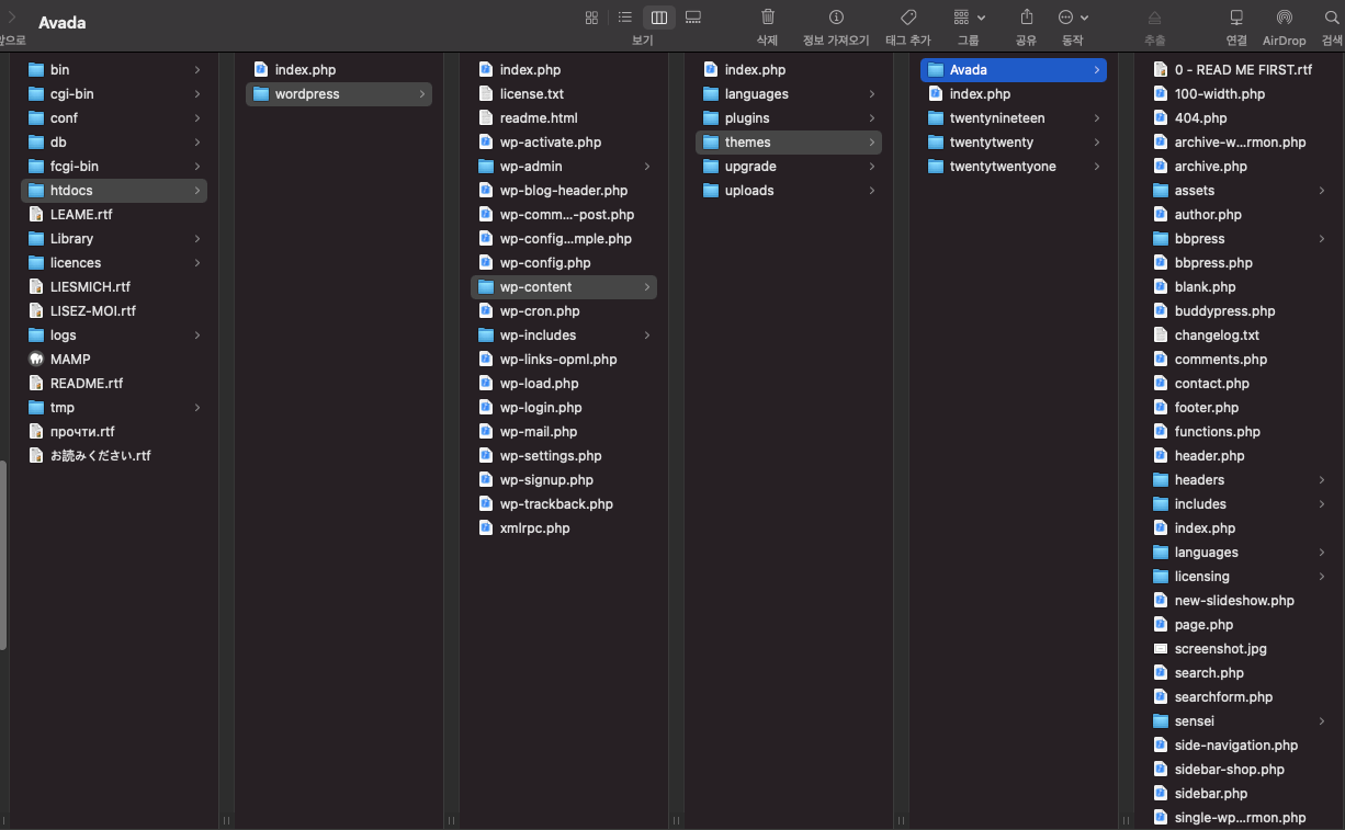 그냥 수동으로 설치 하는게 더 편할꺼 같아서 수동으로 직접 해당 위치 폴더 MAMP -> htdocs -> wordpress -> wp-contents -> themes 아래에 Avada Theme를 카피 해놓으면 될다고 봅니다. 재시동 필요할지도 모르겠네요. 항상 보통은 필요함.
