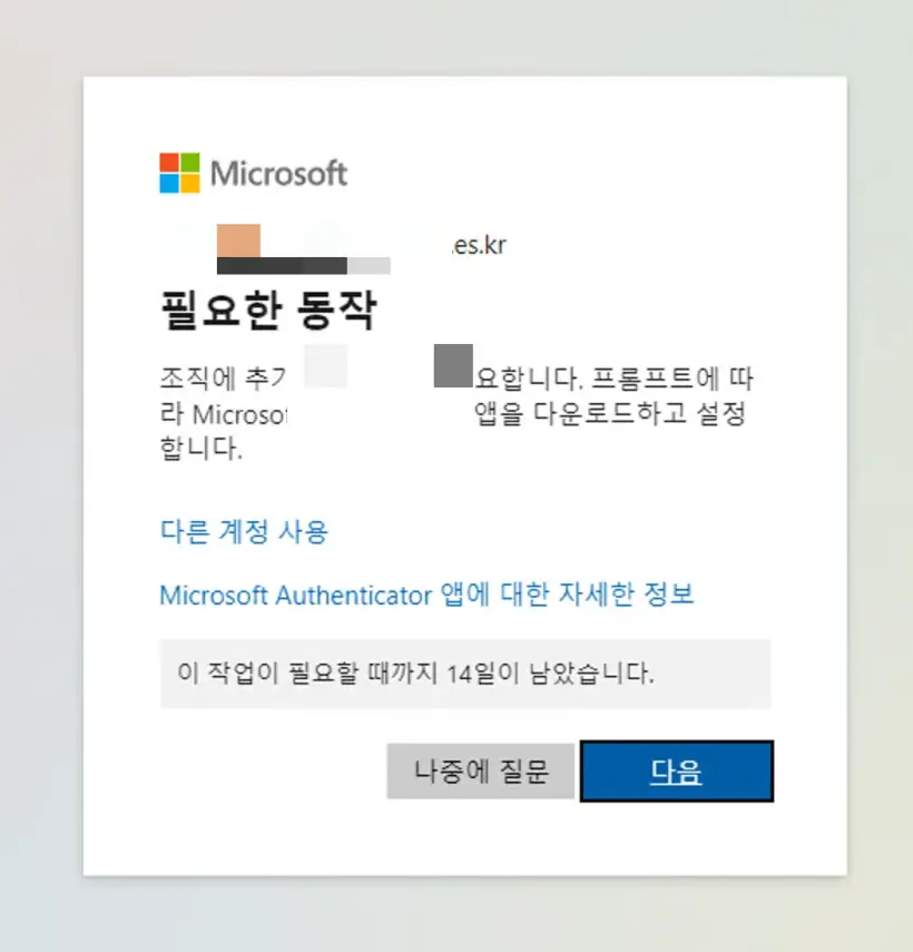 핸드폰에 설치한 Microsoft Office Authenticator 를 통해서 본인인증 실시
