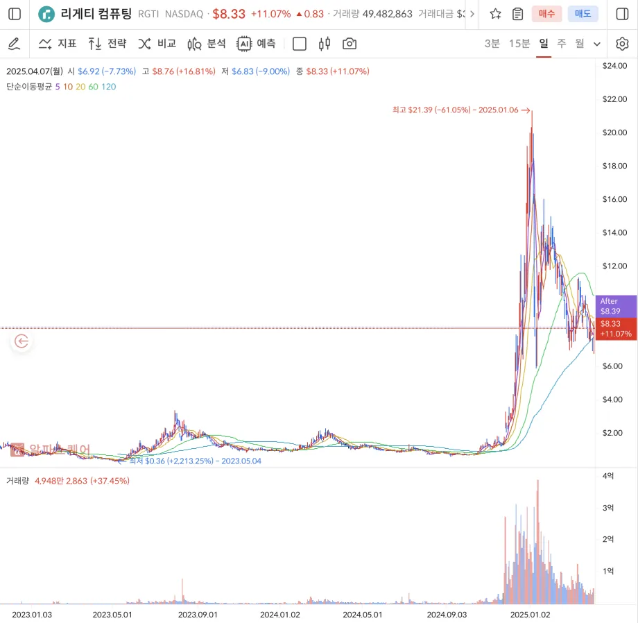 트럼프 관세의 효과 주식 시장 폭망으로 그리고 양자 컴퓨터의 테마가 사라지면서 폭락 더블 폭락의 효과가 리게티 컴퓨팅도 피해가지 못하고 폭망했다. 그렇타고 양자 컴퓨터의 산업이 폭망할까? 라는 질문을 스스로 해보자.