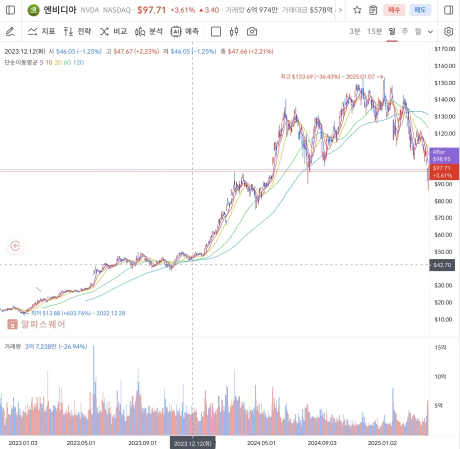 트럼프 관세의 효과 주식 시장 폭망 제대로 한방 먹은 AI 대표 주자 엔비디아. AI는 누구나 바라보는거라 궁금해서 모니터링 한다.