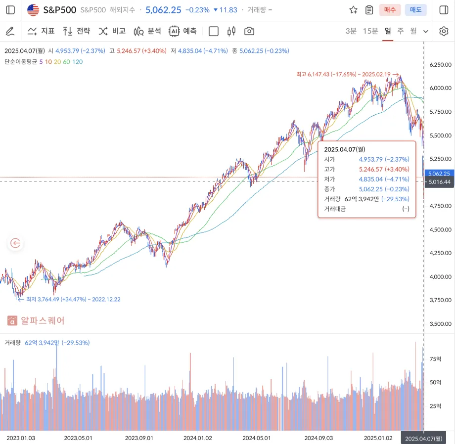 저의 개인적인 투자 테스트 및 투자 공부의 기록을 남기는 글이니다. 트럼프 관세의 효과 주식 시장 폭망 상황을 기록으로 남긴다.